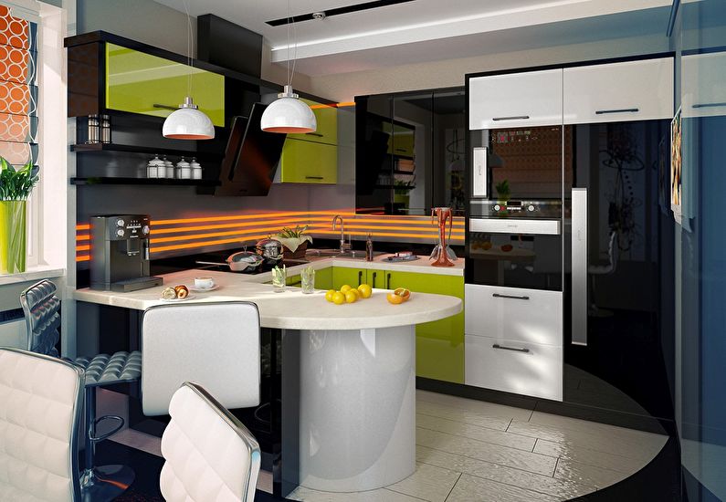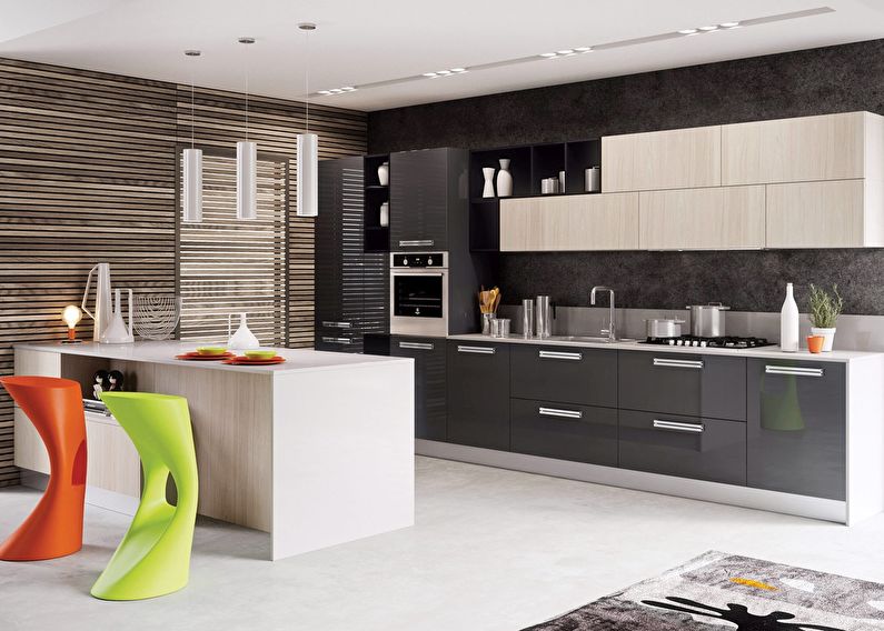 The basic principle when creating a kitchen unit in modern style is functionality, spaciousness and ergonomics. This will keep everything you need at your fingertips, providing comfort during cleaning and cooking.