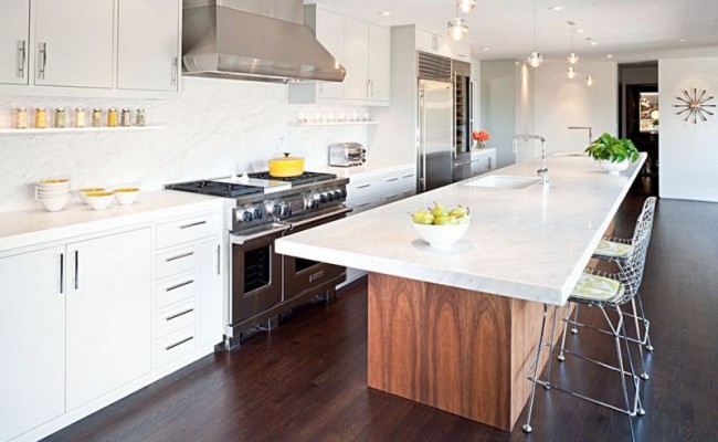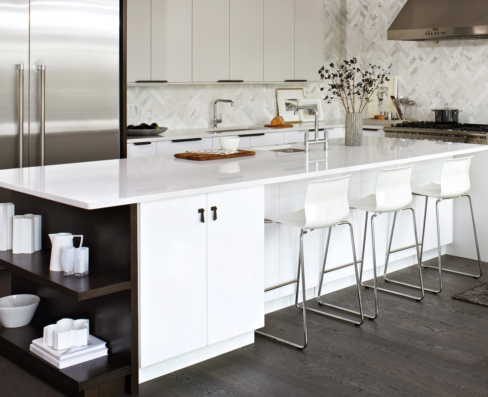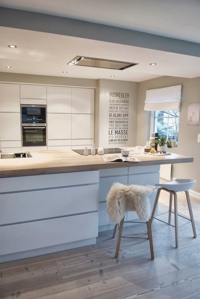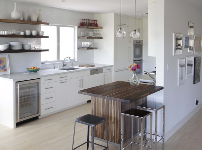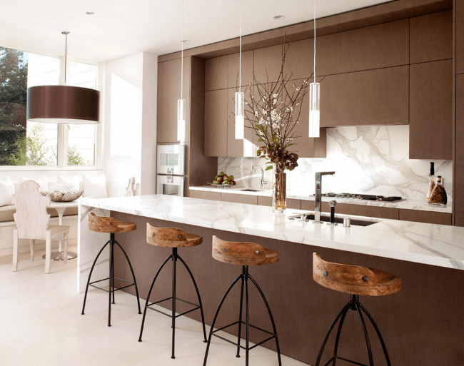 This table is the foundation of minimalism. However, over time, it has changed, adapting to modern interests. Kitchen interier expanded with new materials for facing furniture surfaces, decoration and lighting elements.
