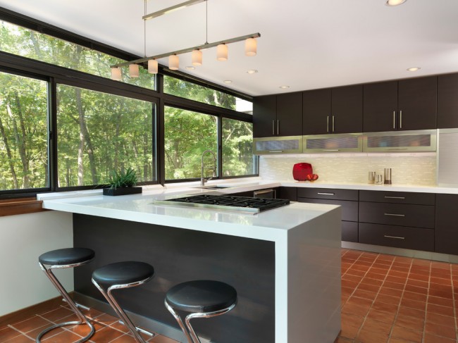 Modern the kitchendecorated in modern styleare a great solution for lovers of innovation, combined with classic restraint. It is suitable for rooms of any size, combining multifunctionality, convenience and a large amount of free space. This is facilitated by a concise furniture, a minimum of massive elements, replacing the overall dining table with a bar counter.