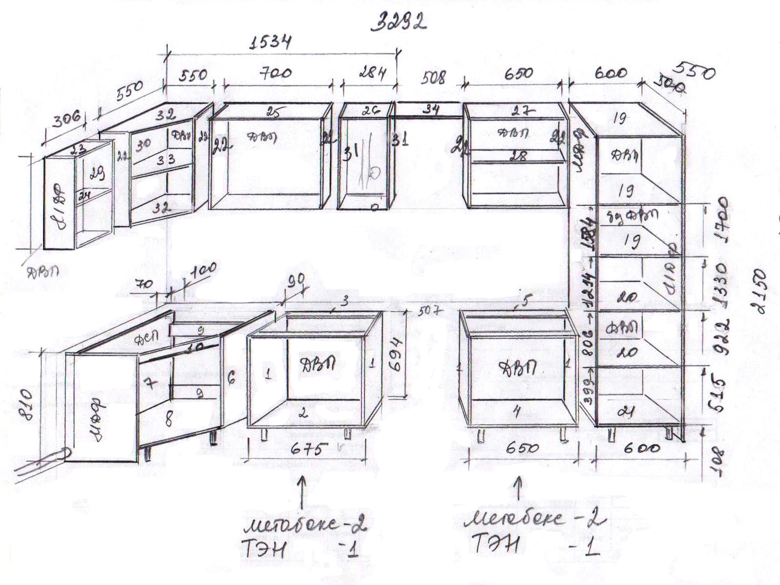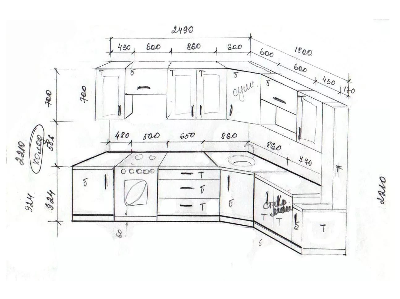 DIY kitchen furniture: do-it-yourself drawing and diagrams