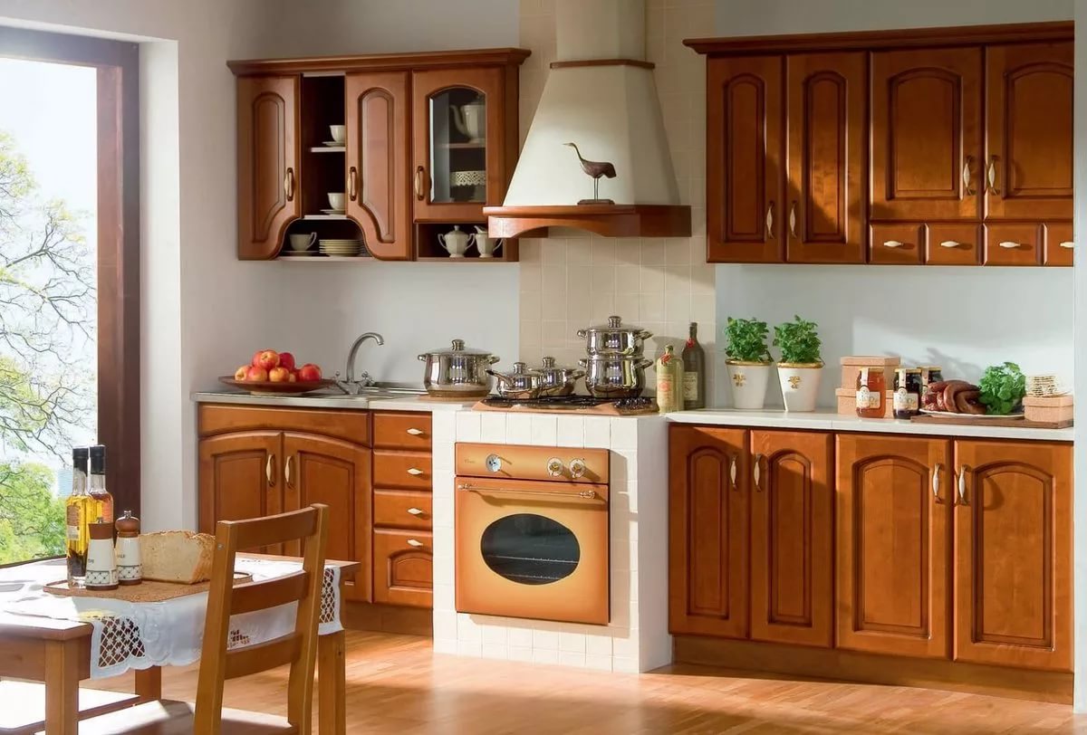 When the kitchen is made of chipboard or MDF, the style of the interior is set earlier by the selected color and shade of the material. It is important to show due zeal and competently combine the existing apartment design.