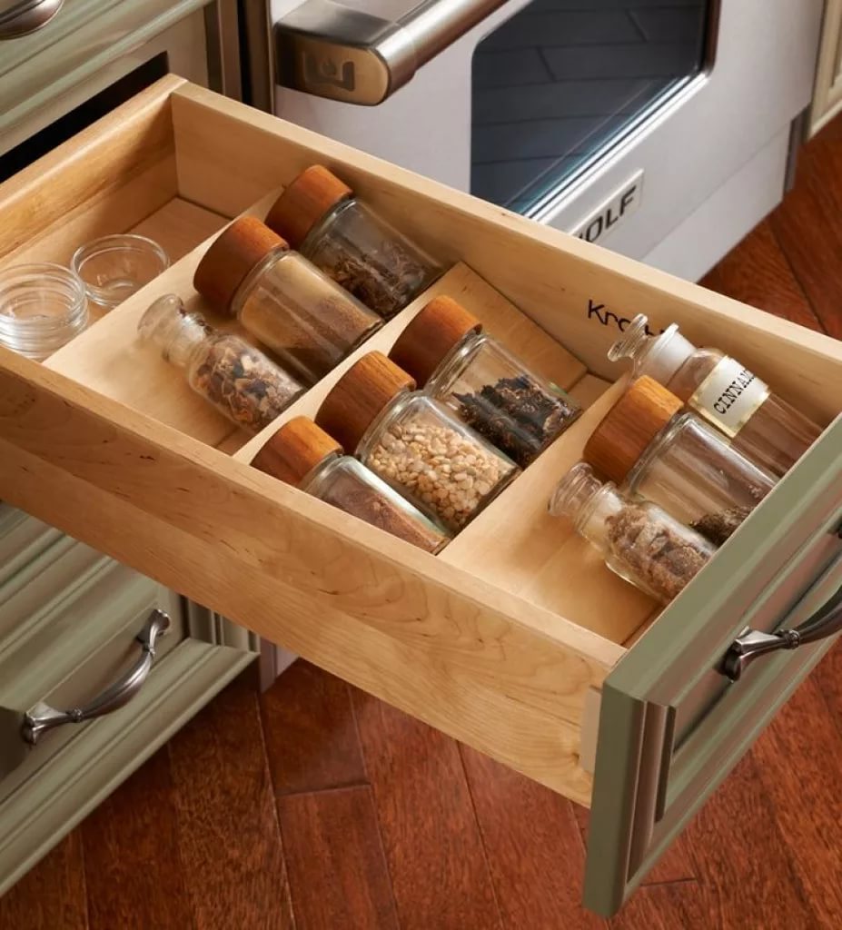 After installing the countertops, they proceed to the manufacture and installation of wall cabinets. They are made in sufficient quantities to ensure the capacity of all household utensils and convenient use. Doors are made and hung last, as they will have to be customized.