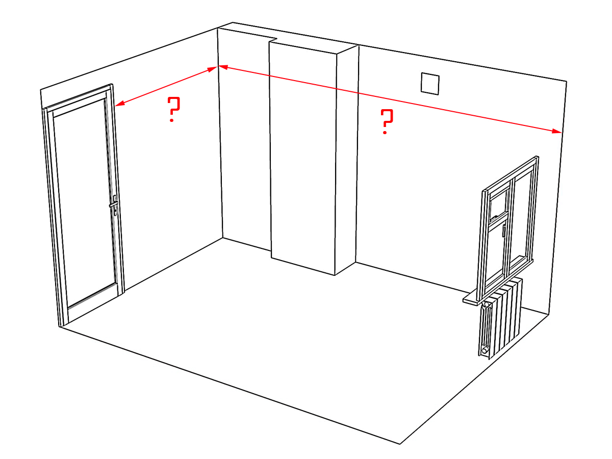 3. Take measurements in several places at once. For more accurate data, distances are recorded in three places on the wall: near the floor, in the middle and at the ceiling. The geometry of the room is usually not perfect, there will be deviations. This way you protect yourself.