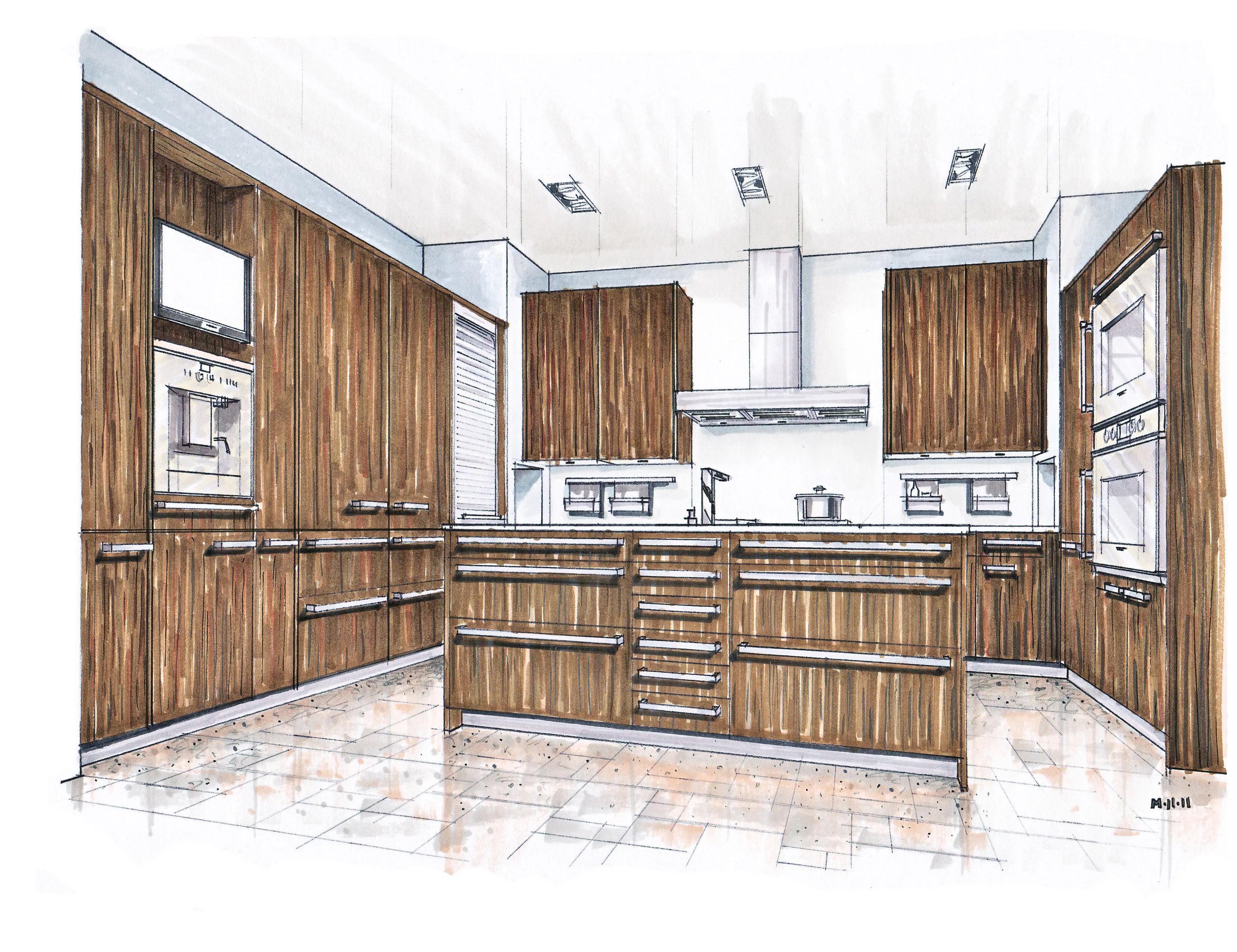 After drawing up the initial plan, they move on to the design project. This is a sketch.