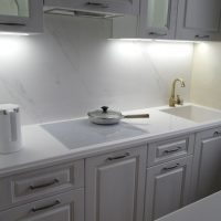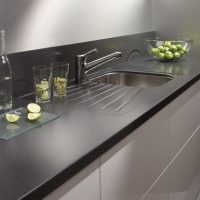 At the same time, such a top will be cheaper than marble or granite and therefore more optimal for the kitchen.