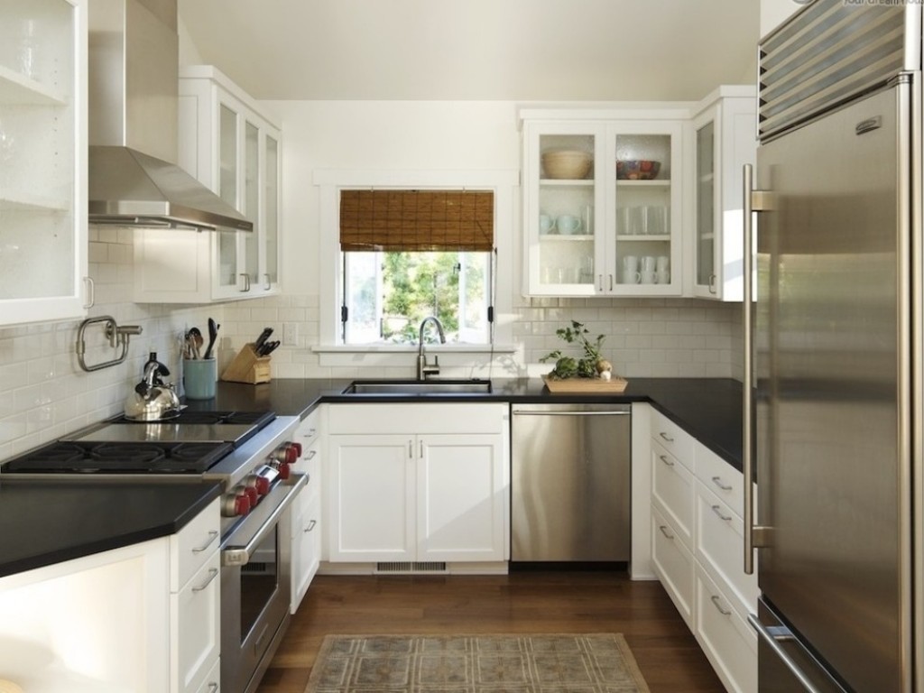 One of the main parts of the kitchen is the cooking area. In this area you need to place a countertop, sink for washing dishes and an oven.Usually this part occupies completely one side of the kitchen. Therefore, you need to watch how the window is located. Because the workspace must be bright. Kiss, located on the hinged cornices should be transparent or easy to open and not block the window. In turn, the curtains or muslin should be completely transparent and at the same time cause a feeling of comfort among the tenants of the apartment. In addition to floor furniture, this area must also have hanging cabinets for storage. You can find many photos on different ideas for placing the working wall in the kitchen.