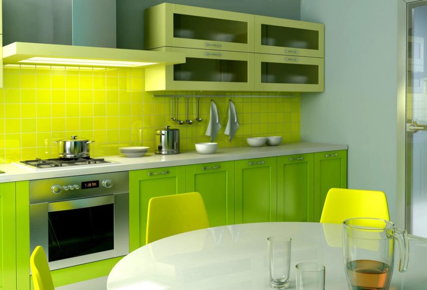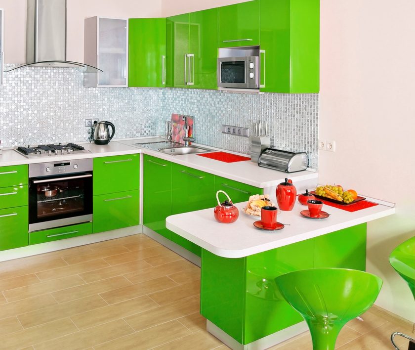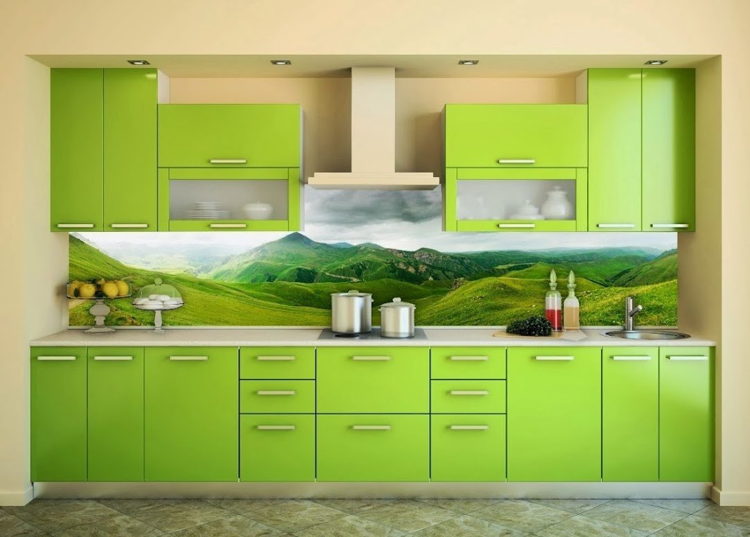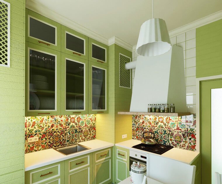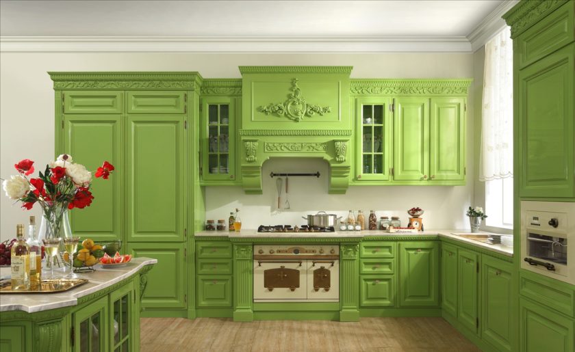 Kitchens with green color in the interior tend to invigorate in the morning and calm in the evening