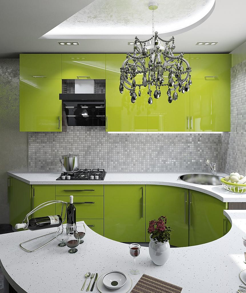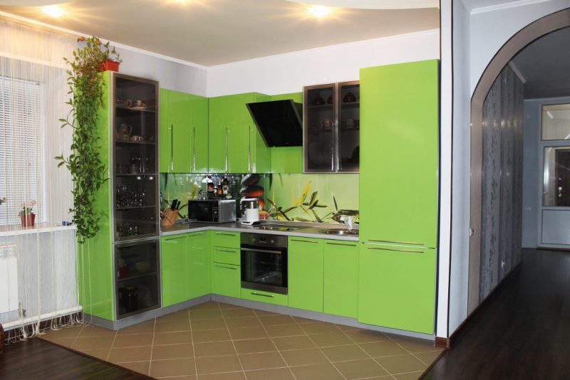 A good choice for modern cuisine is green. It has a positive effect on humans, pleasantly associated with spring, grass, natural aromas. This article details how to create an attractive kitchen design in green on your own.