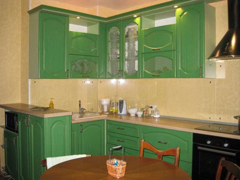 A beautiful green kitchen must be functional. To do this, you should choose the right headset, do not overdo it with the choice of accessories. A kitchen set can combine several green tones: lighter colors with dark ones. Such a headset looks fresh, interesting. But then the walls need to be decorated in a neutral color.