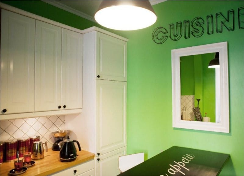 You should not use bright green tones to decorate large wall surfaces, they are much better suited for emphasizing