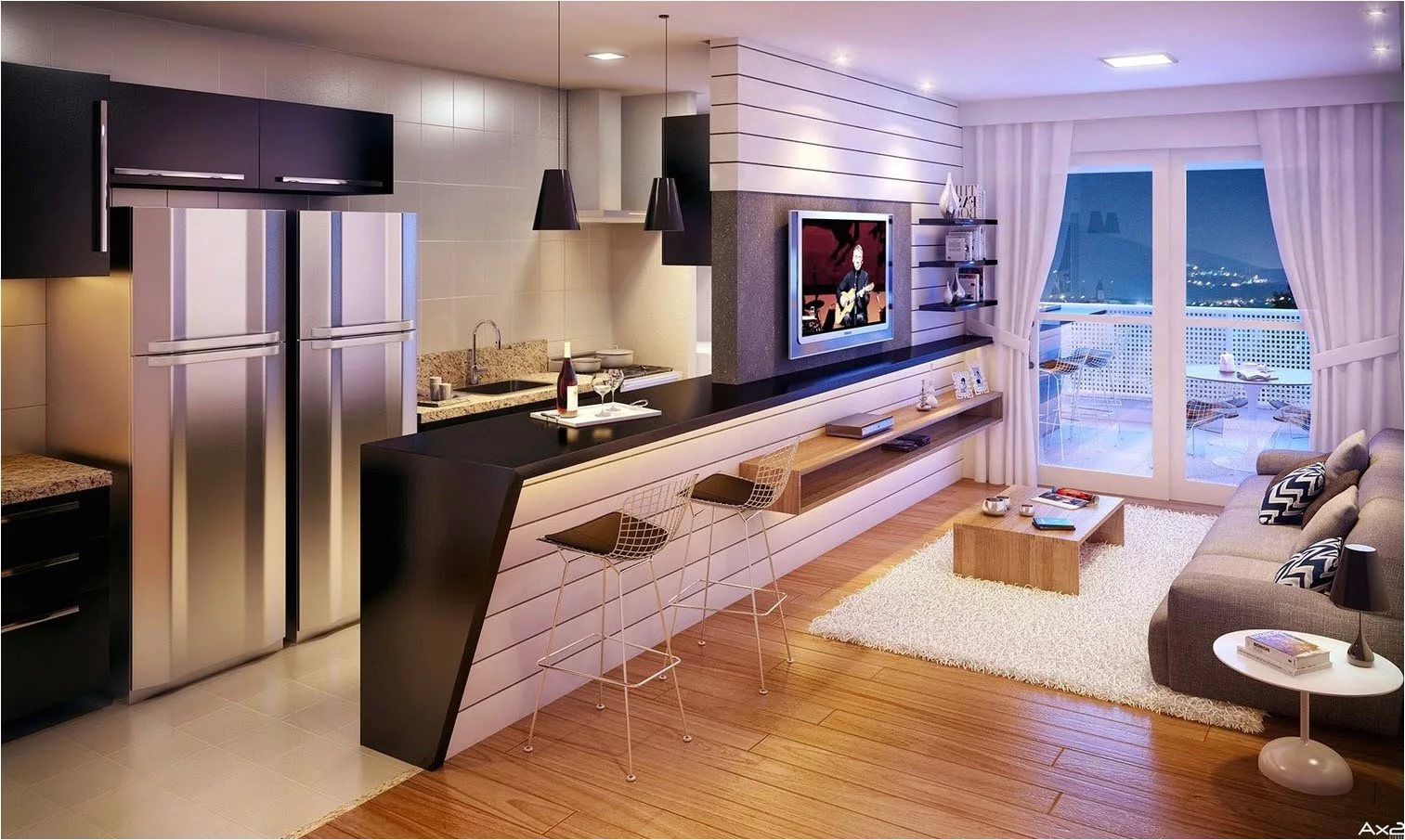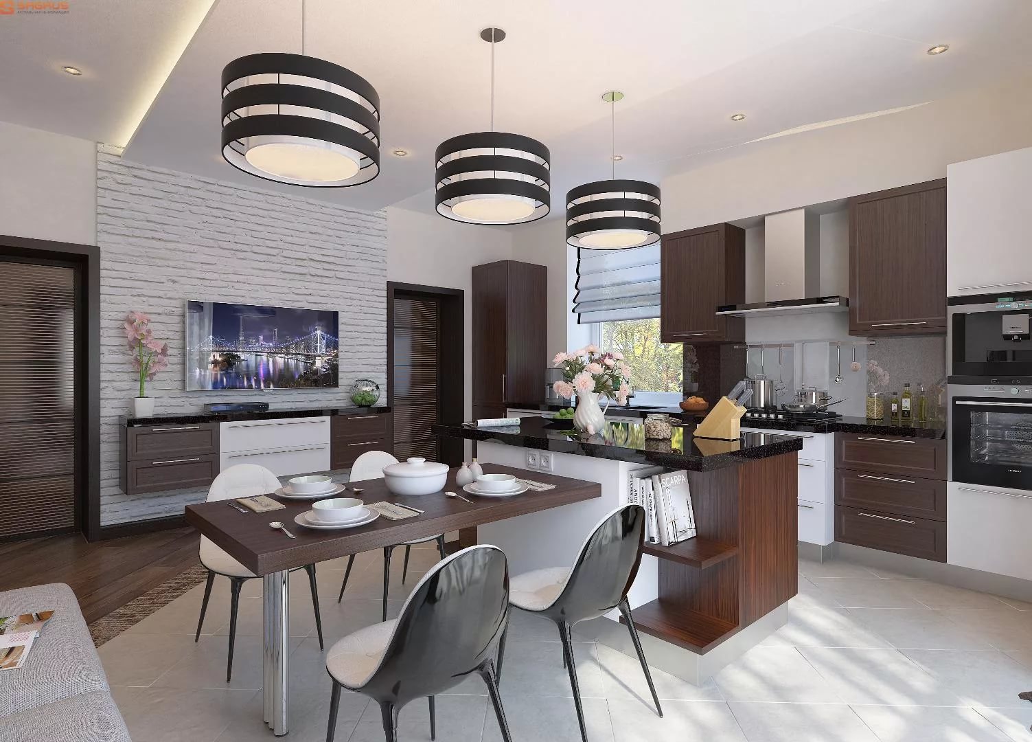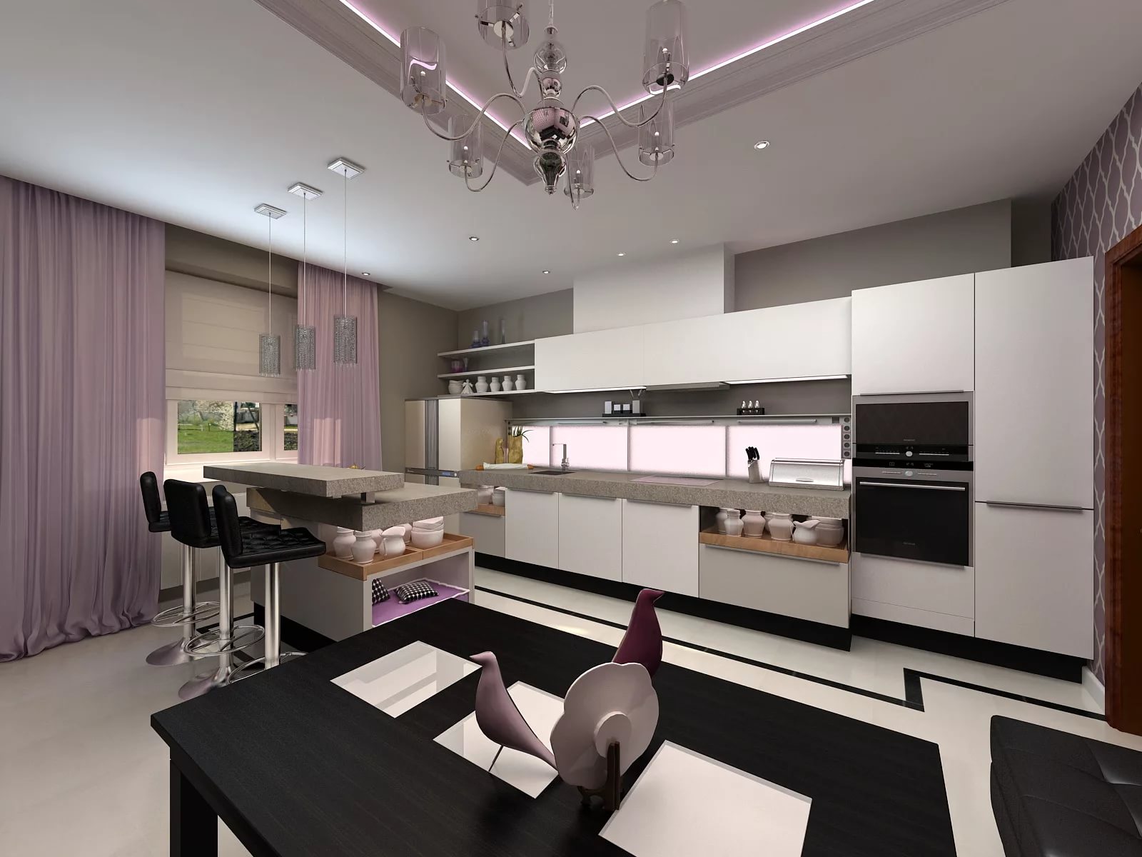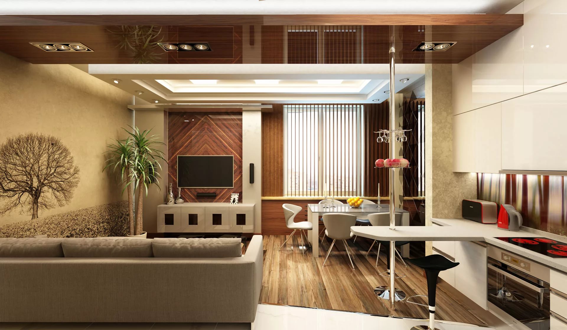 Interesting zoning options for the kitchen and living room