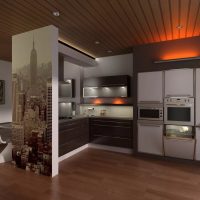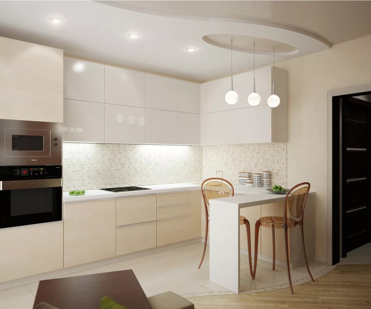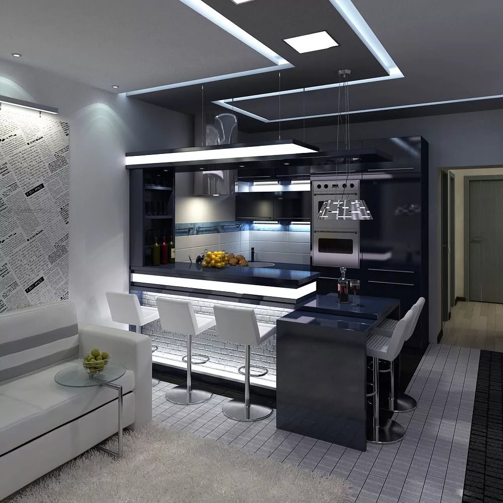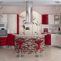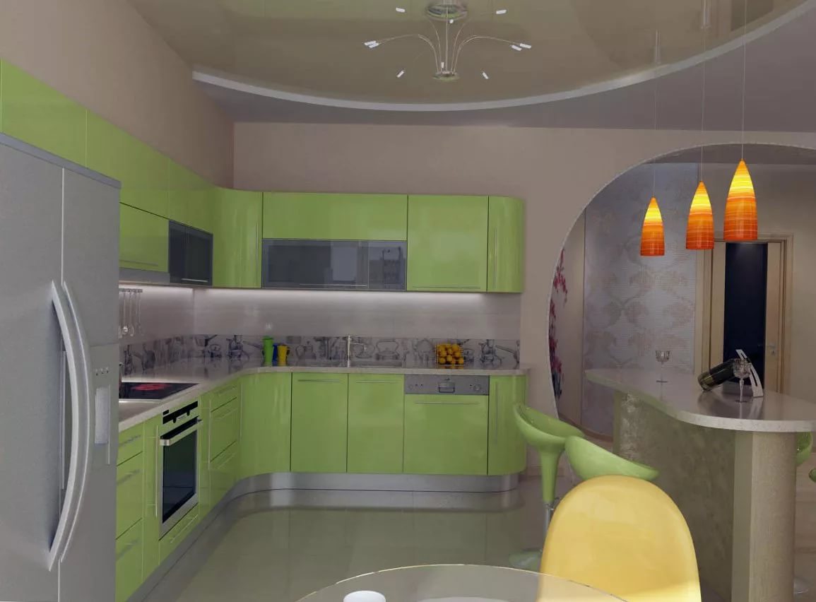 In modern kitchens, the island is often used, and the room can be separated by a bar.
