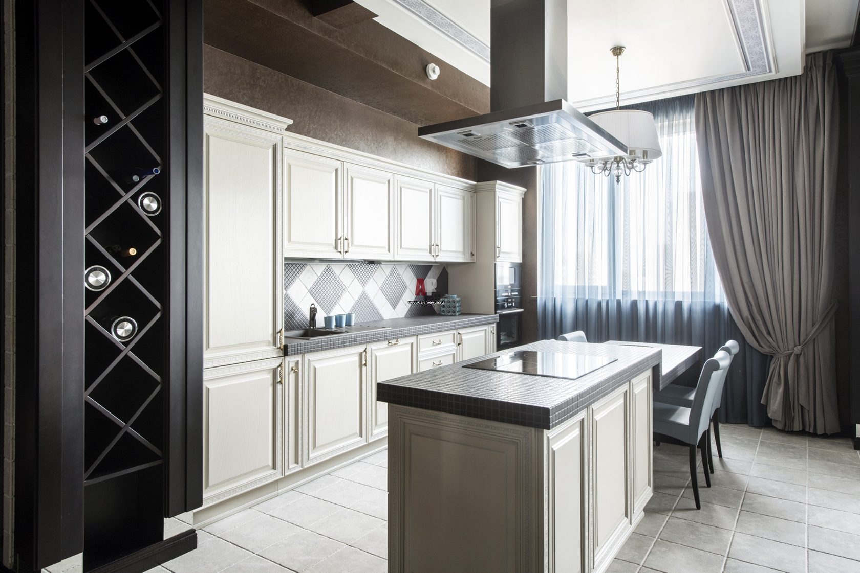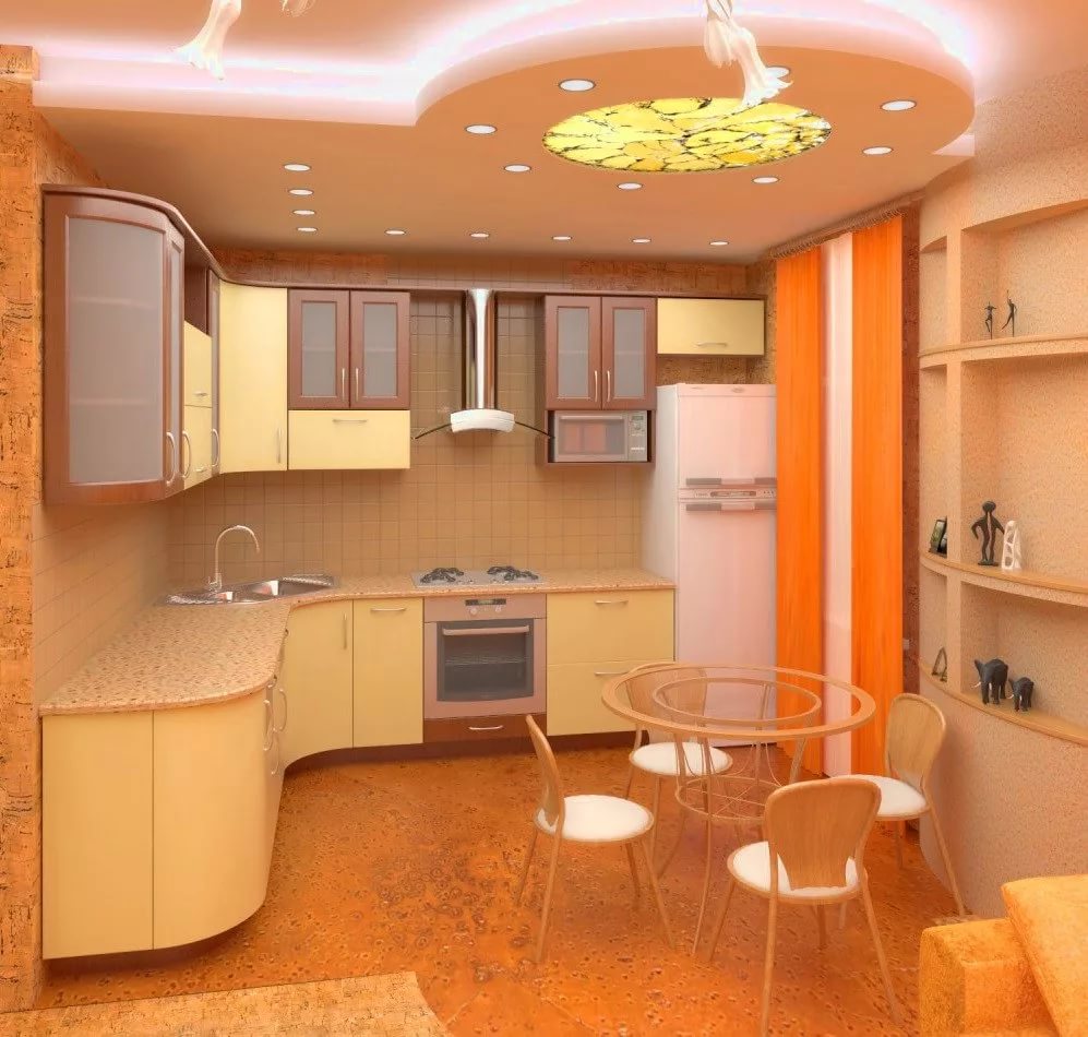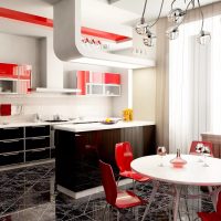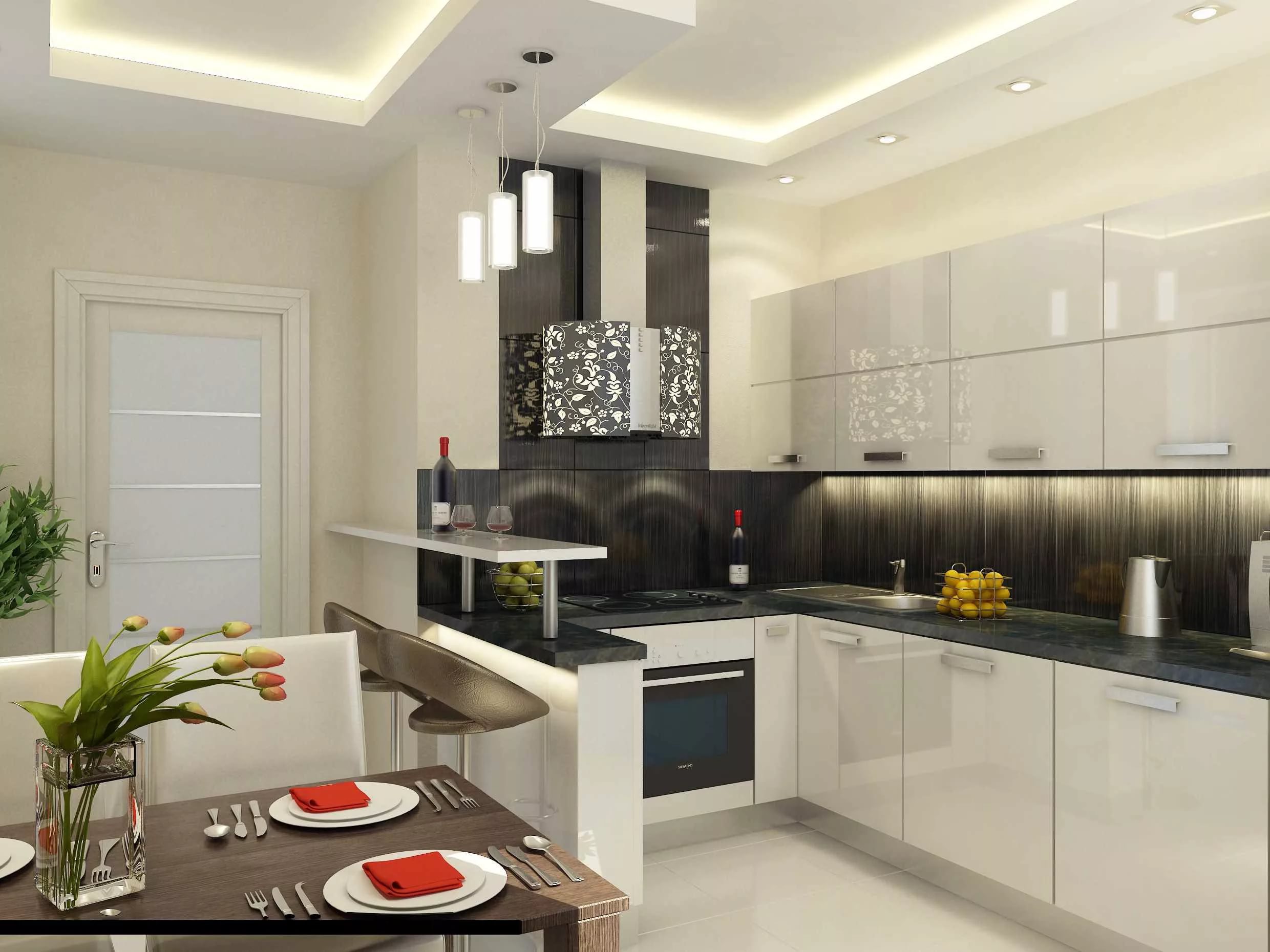 In modern kitchens, the island is often used, and the room can be separated by a bar.