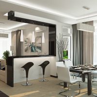 Among the ideas of zoning the kitchen and living room stand out original ways with the help of decor and accessories.