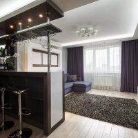 For the loft, you can use the glass frame partition, and for Provence, classics and other styles, a semi-arch with a bar counter below is suitable.
