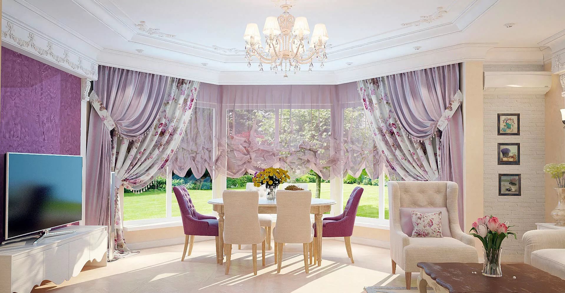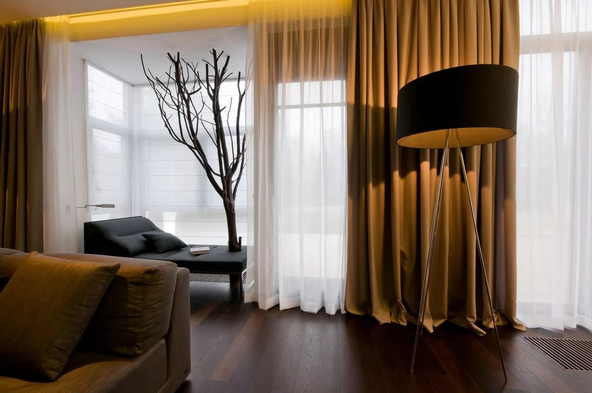 It is important to use curtains better in large rooms with sufficient lighting, otherwise the room may look dark and small.