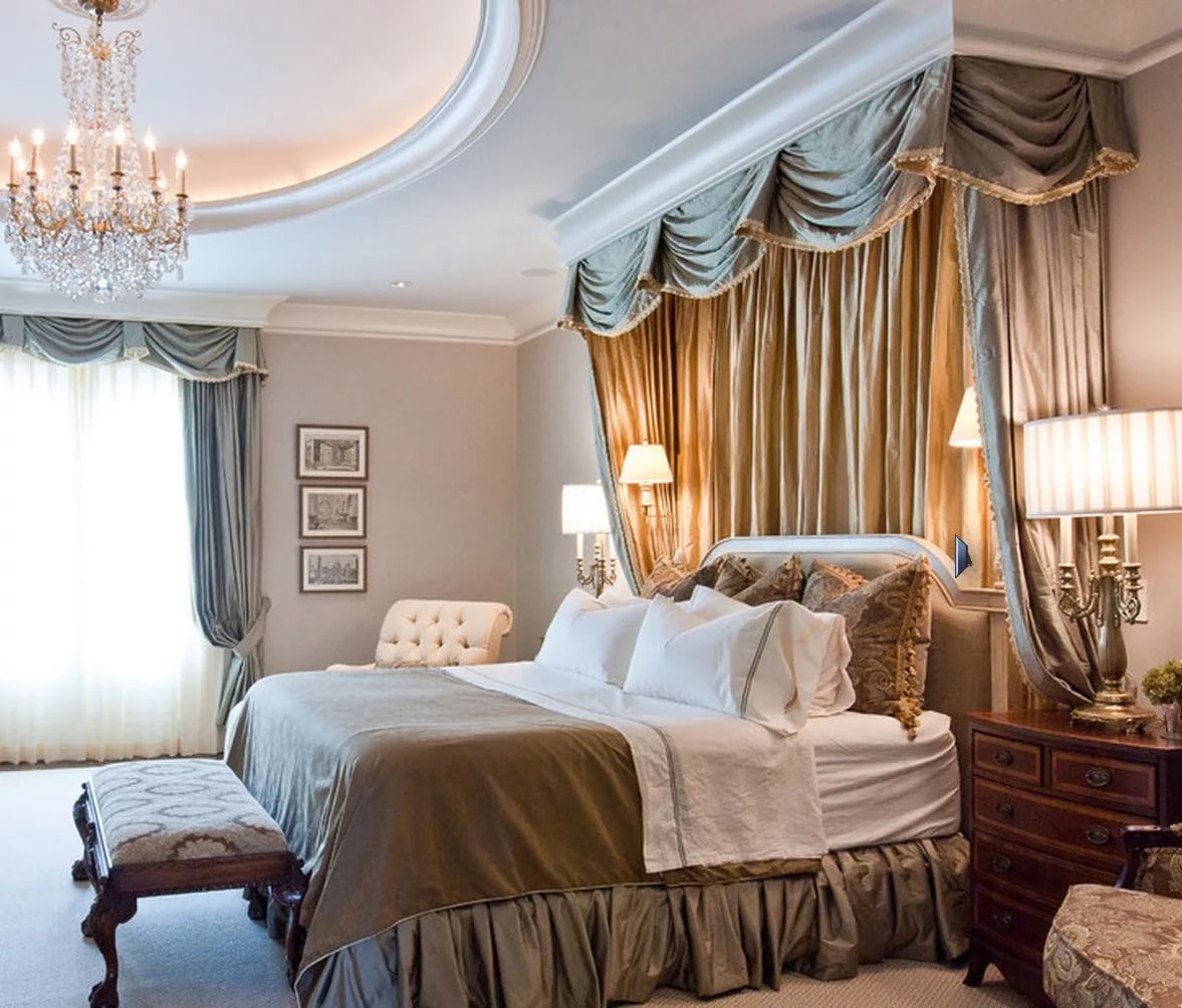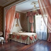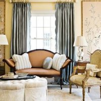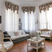 Light tones are preferred. French curtains are more often made of linen, silk, satin, muslin, tulle. It is important to use such a solution only in spacious rooms of a large area. Volumetric elements visually reduce the room.