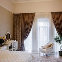 The use of soft colors is recommended in the bedroom. Window decor should contribute to the overall relaxation of the body, since the bedroom is a place to relax.