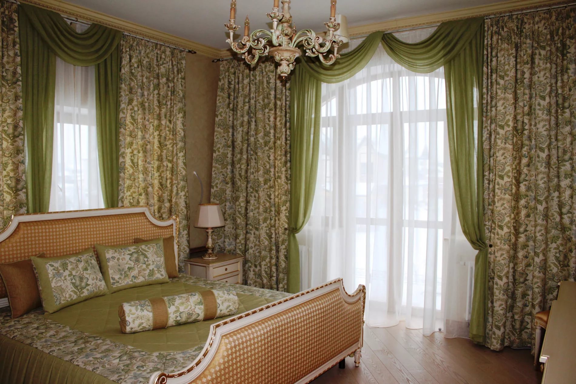 A prerequisite for choosing curtains in the bedroom is their density and light tightness. The use of soft colors is recommended in the bedroom. Window decor should contribute to the overall relaxation of the body, since the bedroom is a place to relax. It is better to use natural materials.
