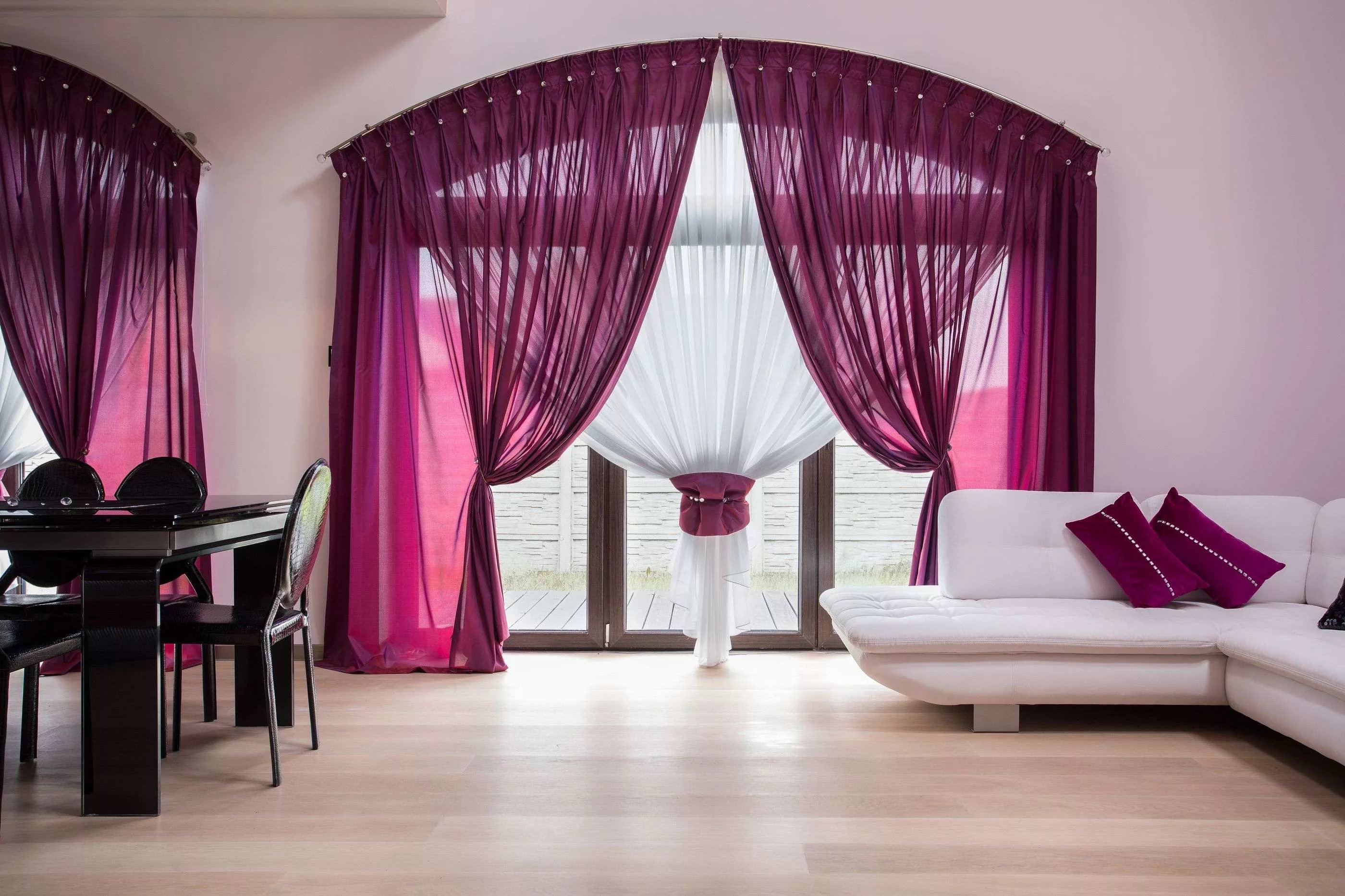 Red-violet curtains can be used as an addition to decor elements, or act as an independent unit, attracting attention, and creating a bright accent in the room.