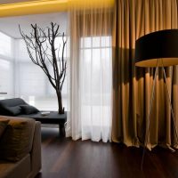 2. Minimalism. Practical design makes it possible to use any materials, neutral colors, bright curtains will spoil the style of the interior. To add lightness, the use of thin white tulle is allowed. Decoration of curtains with tassels or ruffles is not allowed.