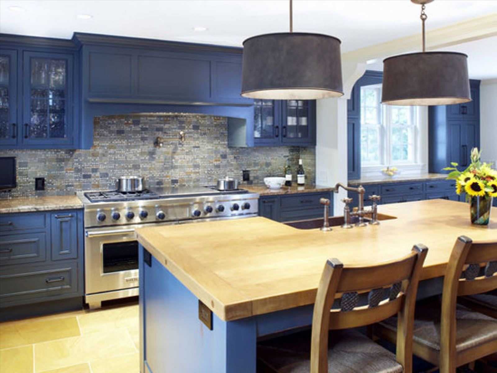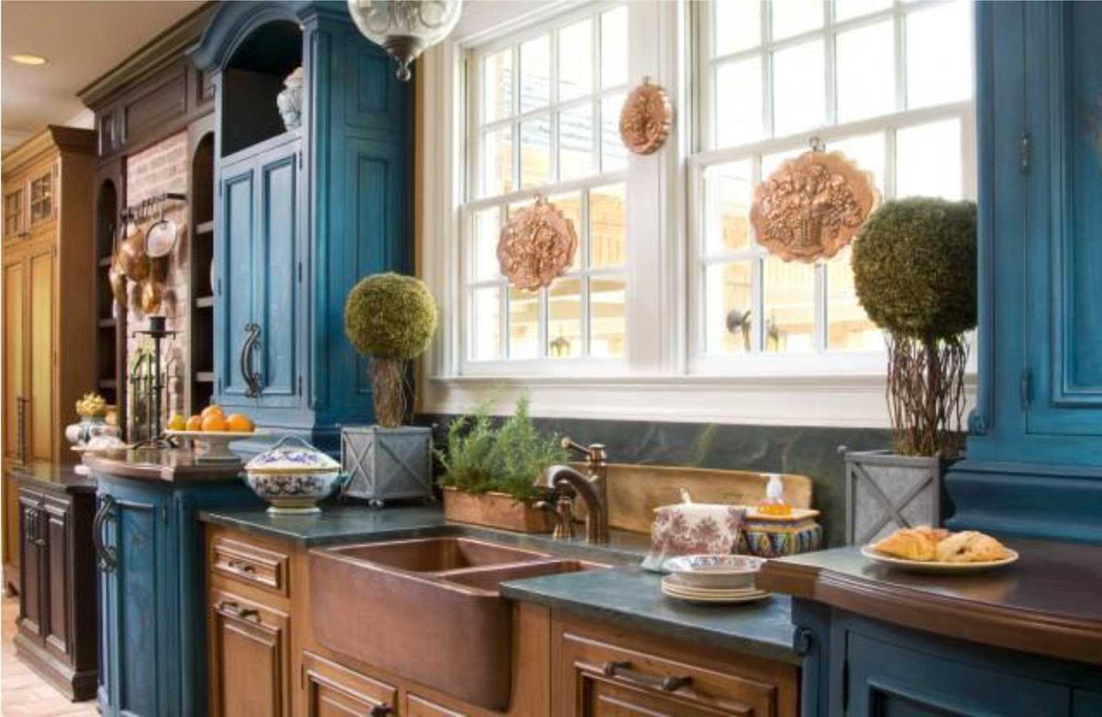 10. Although the blue design does not contribute to appetite, such a corner of cleanliness and coolness will be appreciated by residents of warm latitudes. A similar design is considered traditional for the Mediterranean, Turkish, Greek, Moroccan and marine stylistics. The combination of blue with other colors in the interior of the kitchen involves a white or blue background, blurry shades and a bit of emotional contrasts in the warm palette.