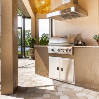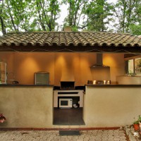 If the summer kitchen has a full-fledged traditional wood-burning stove, you should definitely consider the aspects of smoke removal. Often today, both a stove and an oven are installed right away, thanks to which you can please relatives and guests with ordinary dishes and at the same time cook aromatic barbecue. It is advisable here to carry out all the required communications at once, which will make life easier for the owners.