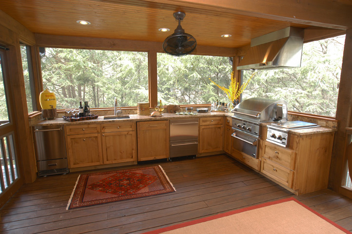 The main criterion for choosing a site for the kitchen is the convenience of supplying communication. These communications are conducted from home, so the kitchen and the house itself will be located nearby. Such communications in the country will be a gas pipeline, water supply with a drainage system, sewage, electricity, and how they are carried out can be seen in the photo of the projects on the Internet.