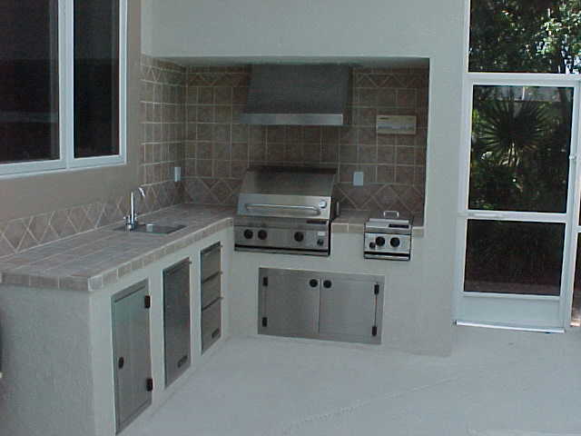 - Now that the site is ready, a pit of 15 cm or more in depth is digging for an open kitchen. Such a pit is made over the entire area of the building, after which it is filled with a special sand cushion, which should be carefully packed. Then the future kitchen is paved, for this purpose a board or tile is used, which bridges directly onto a sand pillow, this is done simply and quickly.