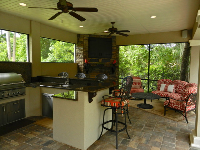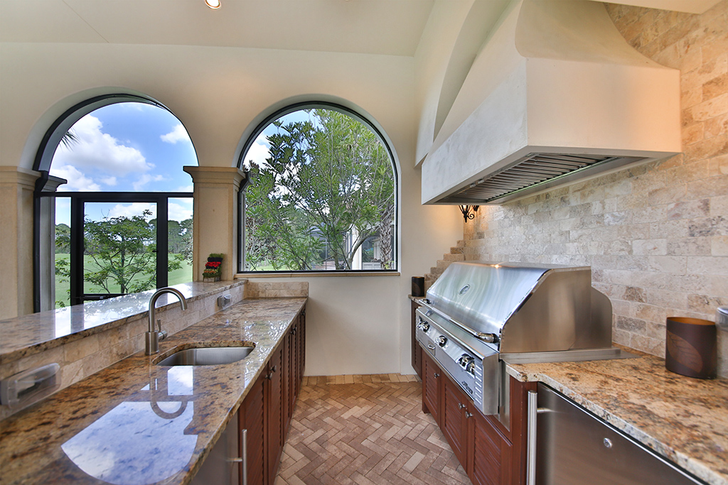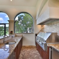 It is recommended to place the windows to the northeast, this will protect from sunlight and keep cool on hot days. You can still build a cellar under the summer kitchen, it is practical and functional.