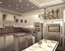 To make the kitchen look beautiful and stylish, it is recommended to place soft pillows on chairs and elegant rugs on the sofa. It is advisable to purchase all kitchen equipment in a single common style, so this room will look more elegant. The finish here should be natural, it is better to use natural stone and wood. And it is desirable to make the floor from tiles, it can be porcelain tile or ceramics.