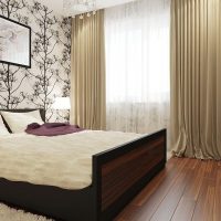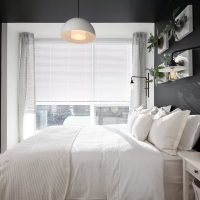 It is important to consider the elements of textiles. In color and material, they should be combined with the overall design concept of the bedroom. One way or another, you should do without dark fabrics and not choose elements with large prints and drawings. When choosing curtains, it is better to give preference to light options that can protect the room from sunlight, but do not burden the space. It is better to choose bedding in plain color so that it is combined with the main color of the room.