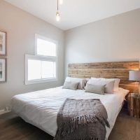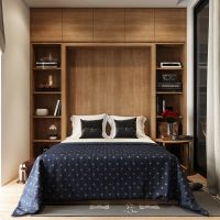 For a small bedroom, this is the best option. No excesses and excesses of decorative elements are needed here. Everything is only the most necessary, convenient and functional.
