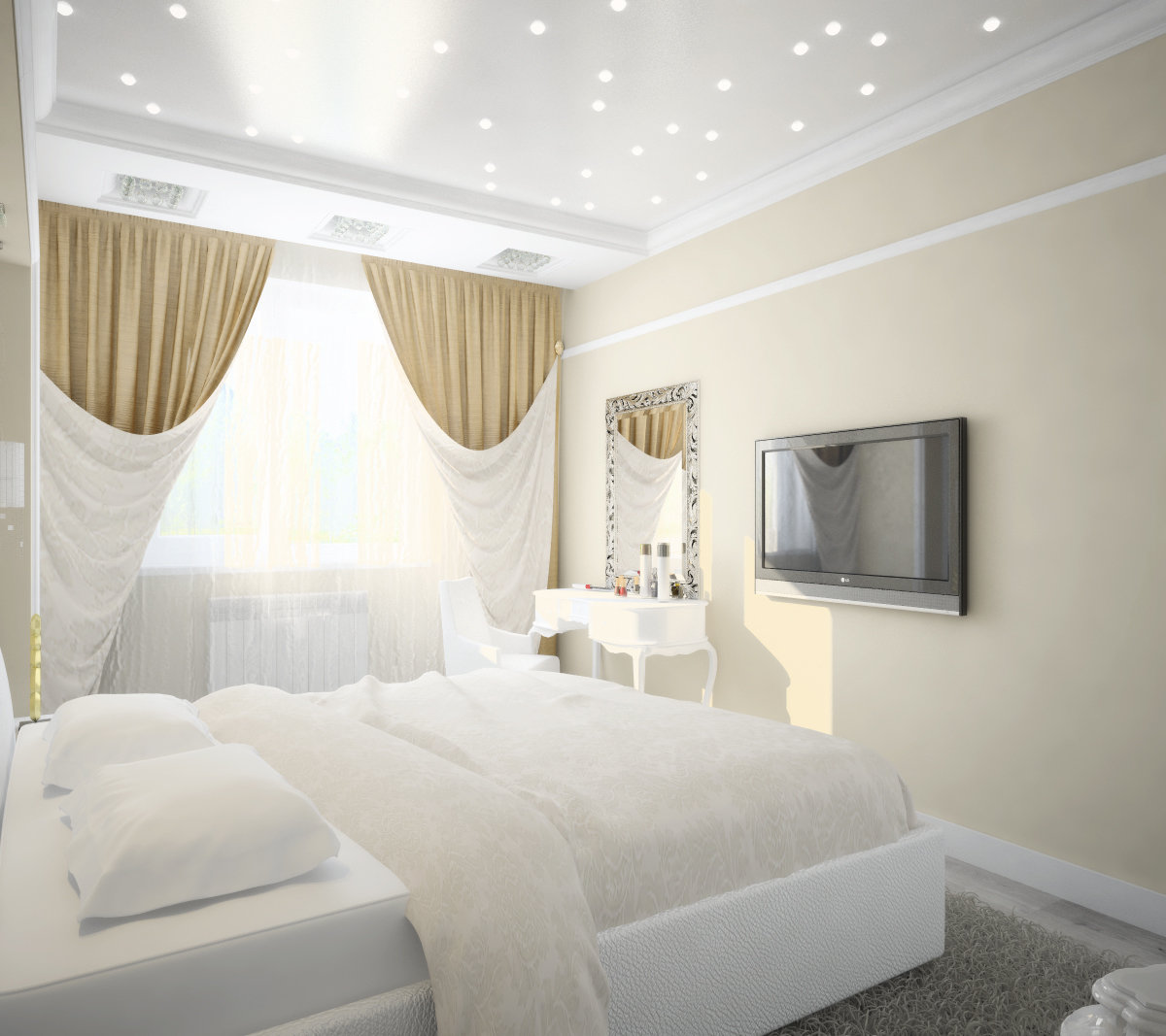 A snow-white room is always calm, relaxation and peace. There will be no sleep problems in such a room.