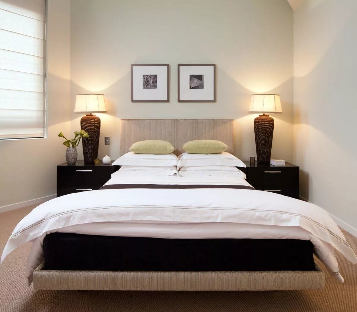 5. Pictures. The canvas over the head of the bed will allow you to focus on the central part of the space.