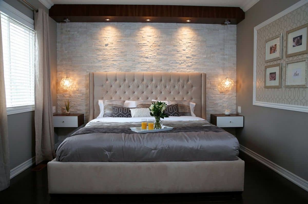 Paintings. The canvas over the head of the bed will allow you to focus on the central part of the space.