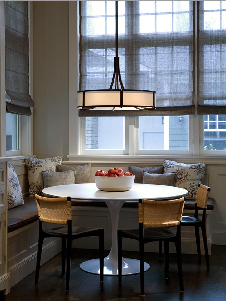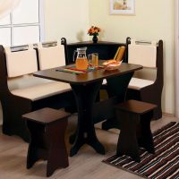 Increasingly, manufacturers offer a combined model. It is usually part of a modern kitchen set. The design is a pull-out unit with a seat by the window or wall. A single monolith allows you to create a single design without breaking the space into separate parts.