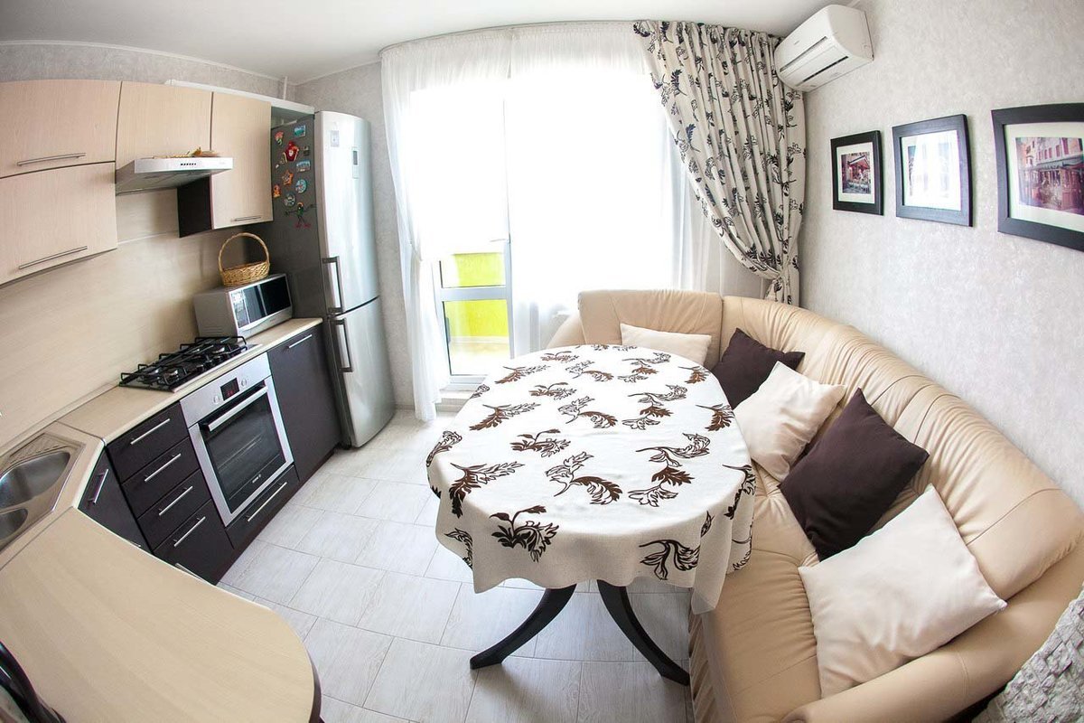 The sofa in the kitchen has long ceased to be exotic. It is rather a competent functional solution.