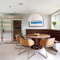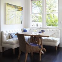 The kitchen has long ceased to be just a cooking place. The appearance of the sofa is not considered something unusual. After all, it greatly expands the functionality of the room.