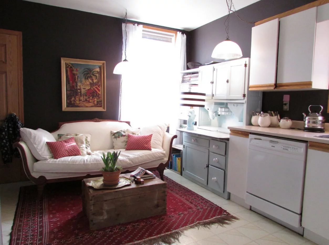 - 14 50 photo ideas for placing a sofa in a kitchen interior