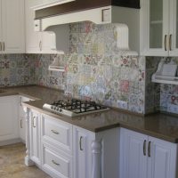 Thanks to the unique texture, the stone countertop is combined with any set.