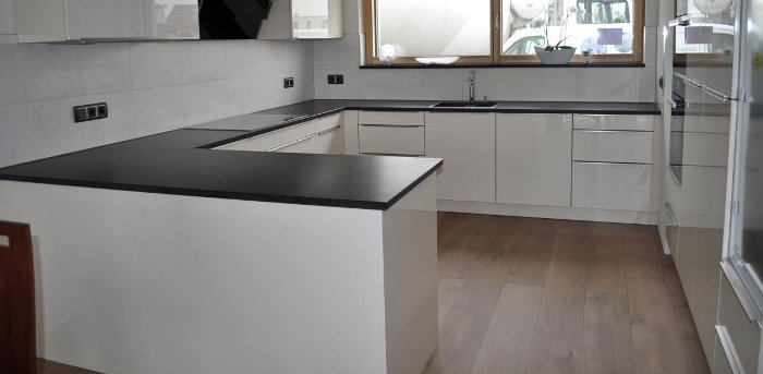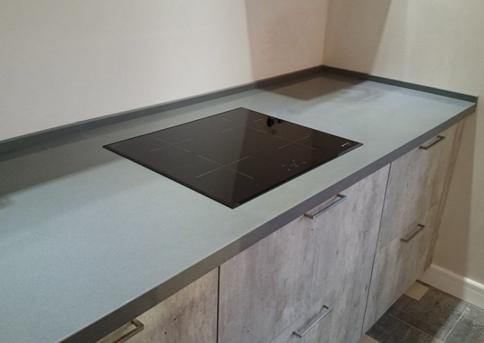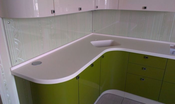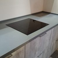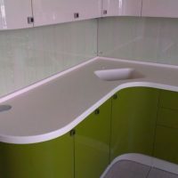 Then a pigment is added that will color the product in the color chosen by the customer. The plate is pressed, hardened at high temperature. Workers grind, adding a distinctive shine to the countertop. Usually it turns out to create a countertop in which the seams are not noticeable. So, this is a wonderful option if you need to make a product for installation in a corner of the room, or an item of non-standard shape.