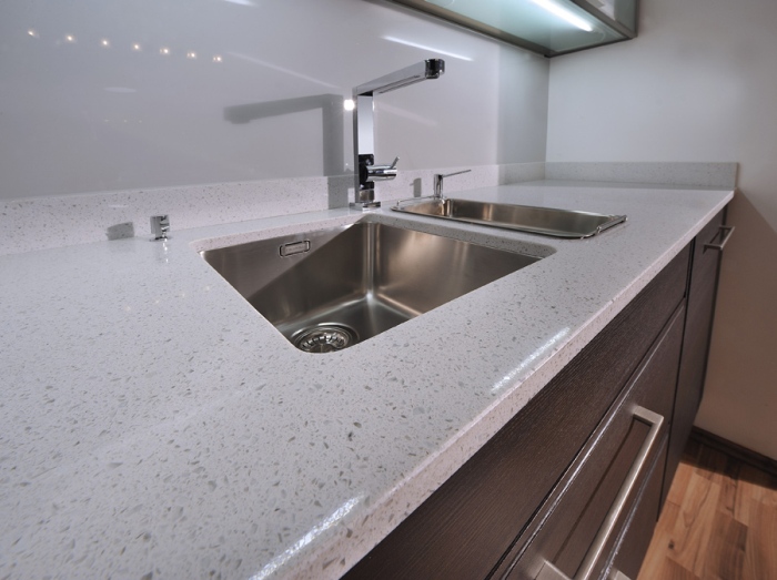The fact is that quartz agglomerate is produced from crumbs of quartz, which really has a natural origin. This stone is considered one of the most durable.Worktops made of material are considered artificial, because the production method is used to manufacture the product. That is, quartz is crushed, binder components and pigment are added to it.