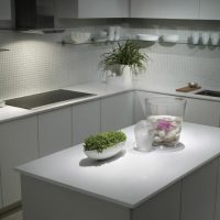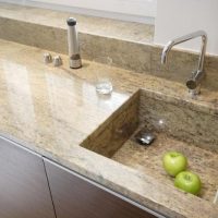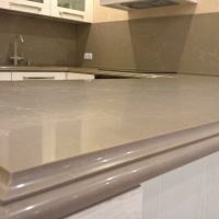 A countertop made of such a material will withstand the impact of heavy objects, as well as mechanical impact. The monolith contains at least ninety percent of quartzite chips, which makes the product incredibly durable. It is this property that is most appreciated in the kitchen.