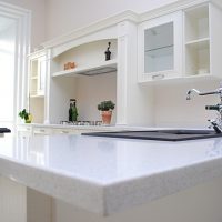 Quartz countertop in the kitchen interior.