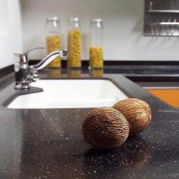 - There are no pores into which moisture gets. Because of this feature, you can not be afraid to wash the countertop with plenty of water. The product does not swell and does not collapse.