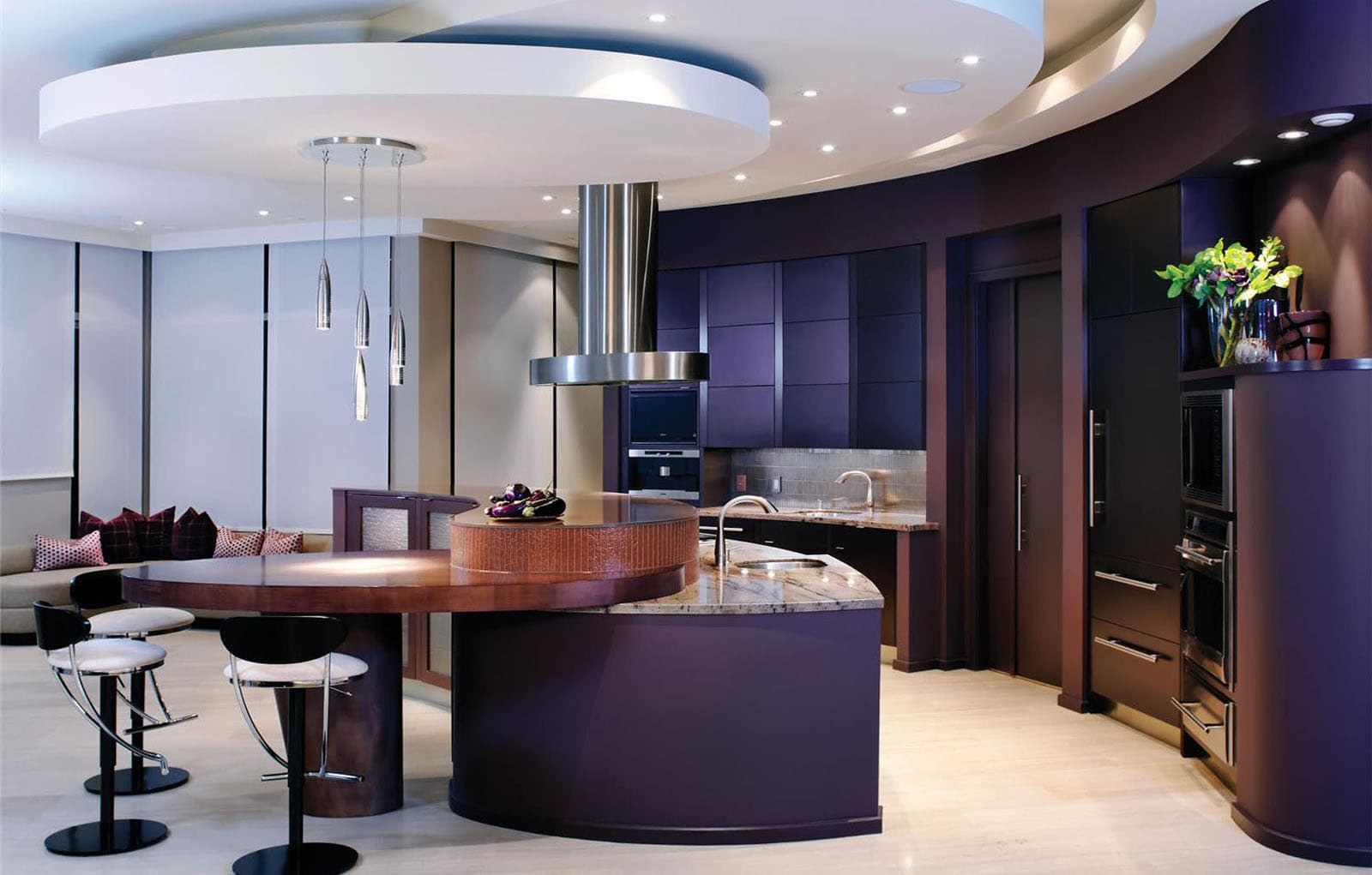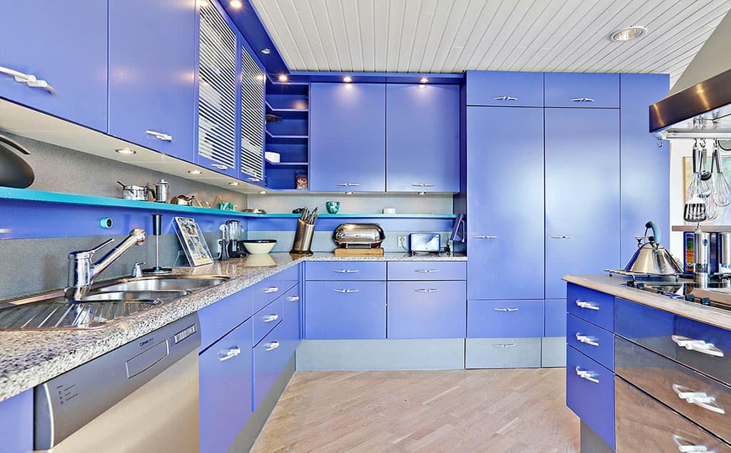 Recently become fashionable kitchen Designcombining shades such as blue and purple, yellow and green, pink and beige.