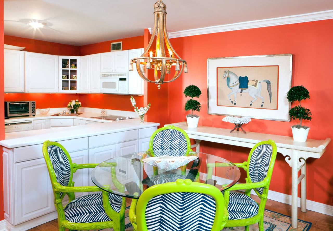 If in the bedroom and living room you need to be as careful as possible with bright shades, then in the kitchen you can give free rein to imagination and imagination. All the main bright shades: red, blue, yellow, green can be diluted with black, white, gray. The eye will not "get tired."