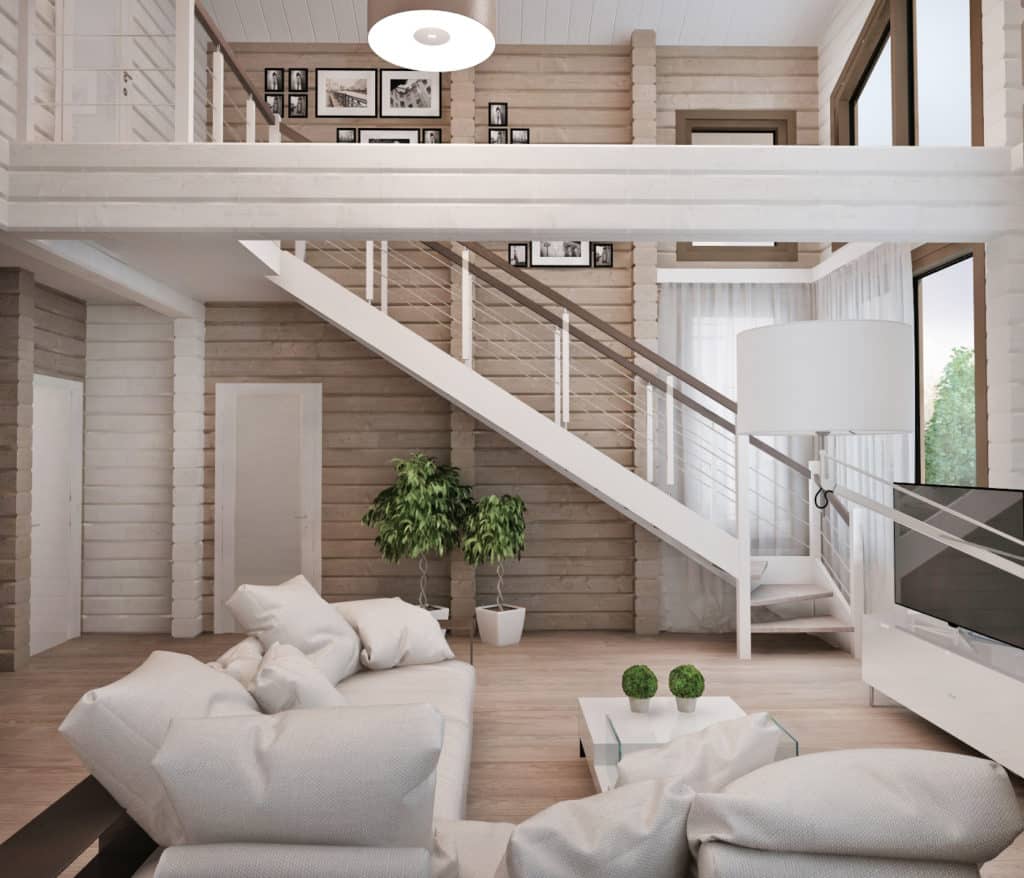A solid design in the English style harmoniously fits into the interior. It will create an atmosphere of luxury and comfort. For her, they choose an expensive tree, carved balusters, elegant finishes. There are other interesting areas: industrial, loft, chalet, provence. To develop a project, it is better to contact specialists.