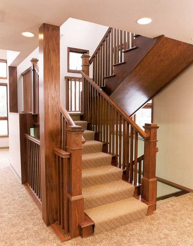 For suburban buildings choose a durable and reliable product that can withstand the rise to the second floor of heavy furniture. Stairs in the interior of wood look spectacular. Environmentally friendly material will bring comfort to the home. Steps and railings put in different shapes.Modern modifications often do not have fences. The degree of security of the model chosen depends on whether children or the elderly live in the house.